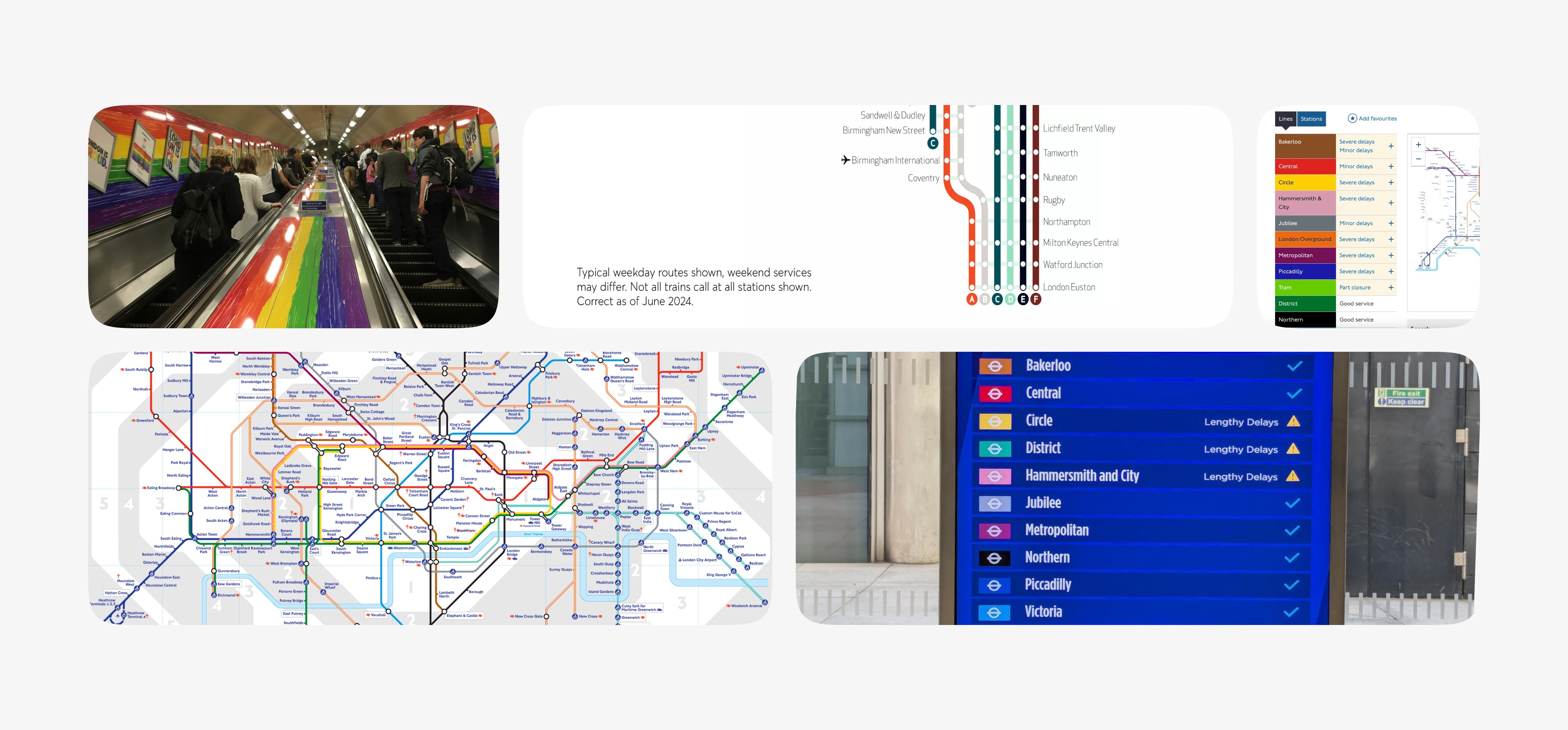 During our exploration phase, we drew inspiration from the London Underground’s route map, which uses colour-coded lines to communicate disruptions clearly. As a team, we explored how a similar approach could help Avanti present service information more intuitively.